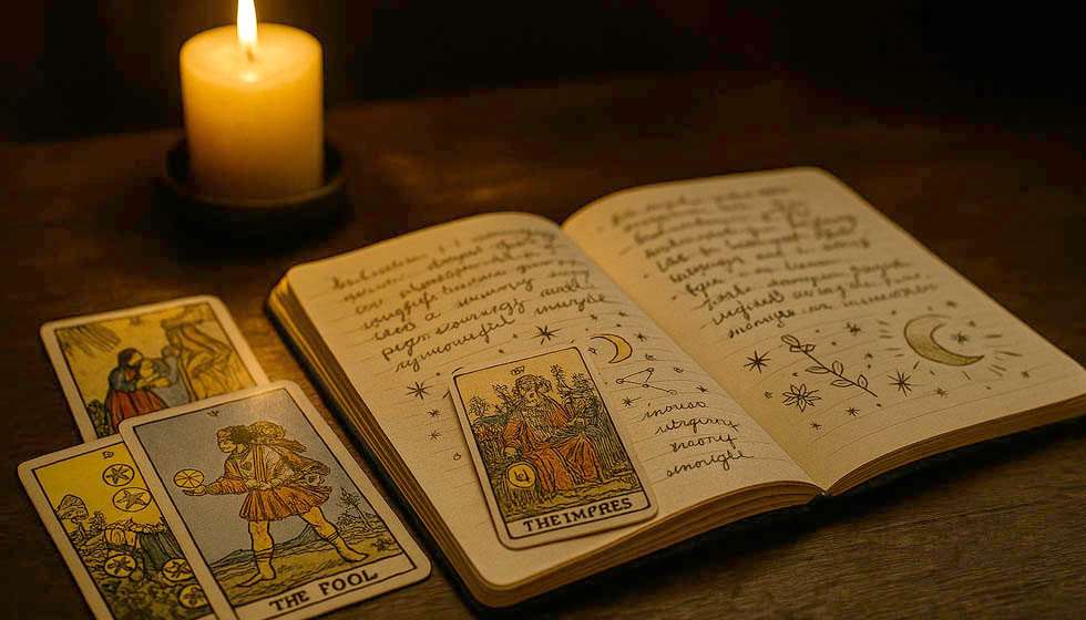 Le journal devient alors un laboratoire intime, où tarot, intuition et créativité se répondent.